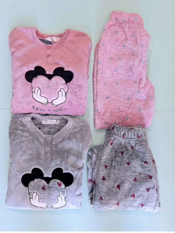F2416 GIRLS THERMAL FLEECY TWO PIECE PYJAMA 100% POLYESTER